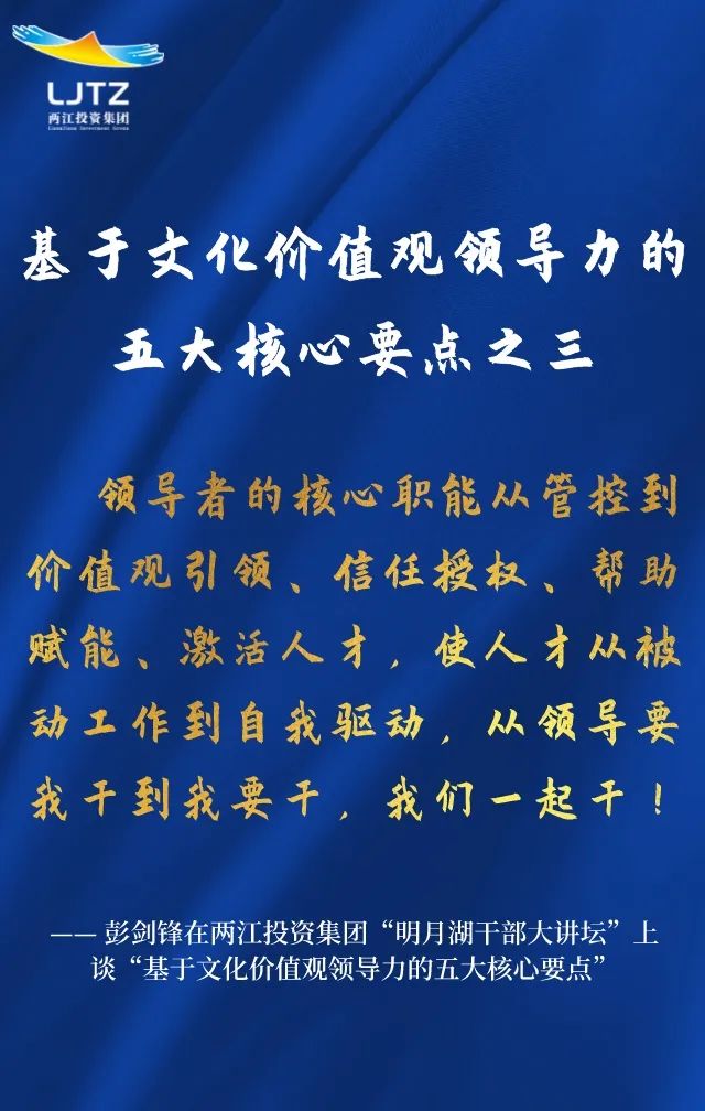 彭劍鋒教授在兩江投資集團“明月湖干部大講壇”上談企業文化建設金句系列之二:基于文化價值觀領導力的五大核心要點