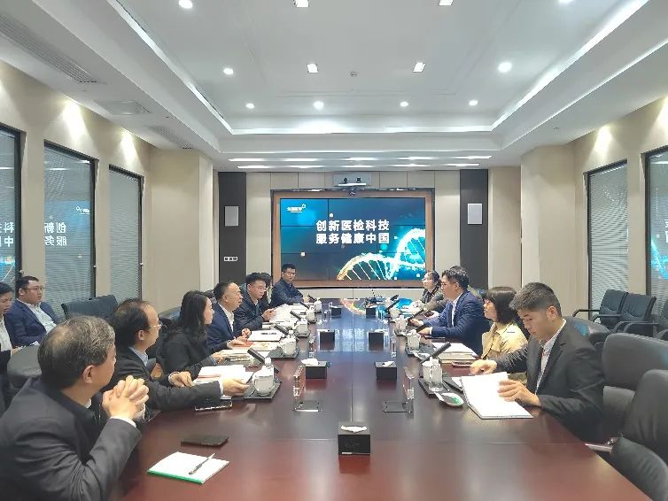 在金域醫學,蔣興益一行參觀了企業展廳與實驗室,了解金域醫學的企業歷史與文化建設過程,實地觀摩企業的文化打造與物化設計,進行了深入交流。